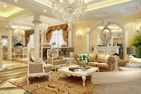 當(dāng)然,歐式風(fēng)格辦公裝修、賓館酒店裝修裝飾等工裝,或家庭裝修裝飾、別墅裝修裝飾等家裝中,濃郁氛圍的也是主次分明的,一般都會(huì)把深色的橡木或楓木家具、具有鮮艷色彩的布藝沙發(fā)等作為別墅裝修裝飾等家裝中客廳的主要角色,這也就是說是不可缺少的。還有浪漫的羅馬簾、精美油畫、工藝精美的雕塑藝術(shù)品等,都是歐式風(fēng)格家裝或工裝中的主要、主導(dǎo)型軟裝飾元素,這些元素自然會(huì)隨小戶型、大戶型以及較大戶型的不同而在應(yīng)用上作增減選擇的。