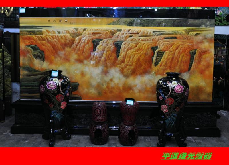 就這樣,展現(xiàn)在辦公裝修、賓館酒店裝修裝飾等工裝,或家庭裝修裝飾、別墅裝修裝飾等家裝中的每一件平遙推光漆器要刷漆6、7次,每次同樣用砂紙、木炭、絲絹等介質(zhì)推光,再用手掌推光等,而且是越到后面,更加的周密而細(xì)致,用水砂紙摩擦也是先用粗的,后用細(xì)的,再用棉布、頭發(fā)、麻油、掌心反復(fù)推等,并且這些都是憑眼力觀察、憑心感受而推到漆面光耀照人。