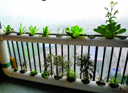 7. 最后,我們就可以在自制的PVC花盆中種菜,實現(xiàn)我們的種菜事業(yè)了。初學者可以選用一些易于種植,易于成活的蔬菜,如生菜,油麥菜之類的,待綠色蔬菜茂盛的生長時,我們不僅可以享用到純綠色美食,而且當陽光灑在它們身上發(fā)出那青翠的色彩足可以將陽臺裝點成真正的大自然,給人以清新自然的感覺,散發(fā)著濃濃的田園氣息,看著就心情大好,真算得上是一舉兩得,美不勝收。