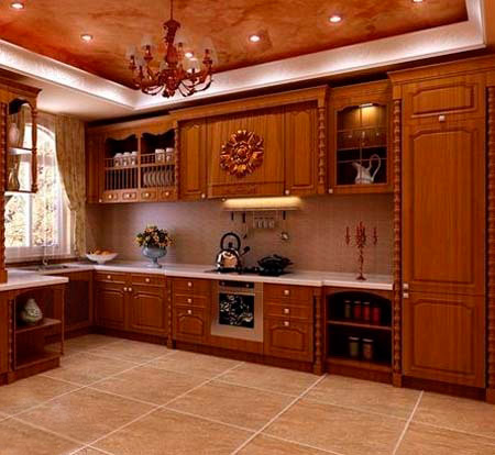 再來看看這間廚房,整體顏色以深棕色為主,實木的組合櫥柜,紋理清晰且具有強烈的現(xiàn)代感,造型簡單,明快,雕花精巧細致,惟妙惟肖;樸素的仿古磚,配以合適的燈光照射,讓整個廚房看上去精美華貴,高貴感十足。臺面上擺放的燭臺和花瓶,盡顯歐式風(fēng)格的古典韻味。