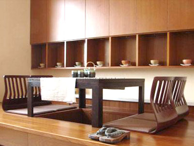 傳統(tǒng)的日式茶桌:日本人喝茶是很有講究的,不同于我們中國(guó),茶入杯沖泡即可飲用,茶桌是日本人喝茶的必須設(shè)備,他們會(huì)在茶桌上招待客人,用精心調(diào)制的茶接待客人,是對(duì)客人的一種尊重。