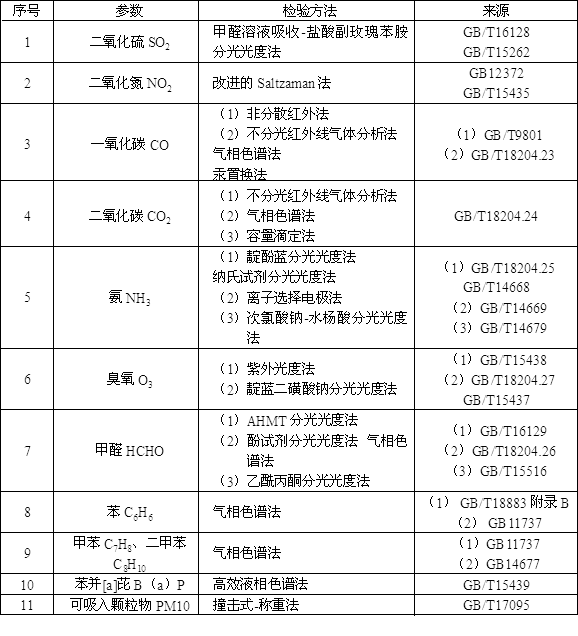 室內(nèi)空氣中各種參數(shù)的檢驗方法