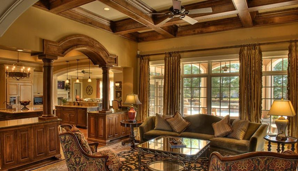 歐式古典風(fēng)格賓館酒店裝修裝飾等工裝,和別墅裝修裝飾等家裝中,彰顯大氣、貴氣目的必須的表現(xiàn),所以在材質(zhì)上,較多采用櫻桃木、胡桃木等高檔實(shí)木以及仿古地磚、歐式壁紙、大理石等,彰顯高貴、典雅的貴族氣質(zhì),并強(qiáng)調(diào)以華麗的裝飾、濃烈的色彩、精美的造型達(dá)到室內(nèi)裝修裝飾雍容華貴的裝飾效果,由此,歐式客廳裝修裝飾的頂部喜用大型燈池,并用華麗的枝形吊燈營造氣氛。